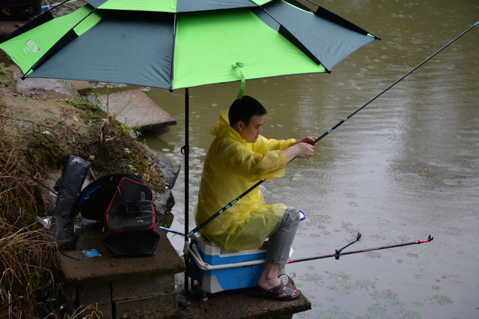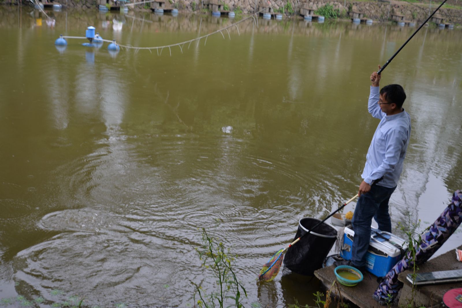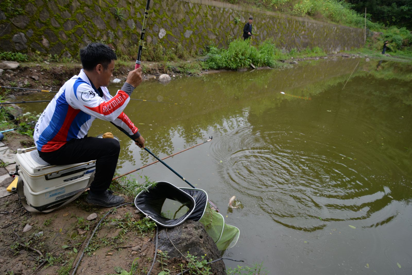 雖然天空不作美,下著淅淅小雨,但擋不住選手們釣魚的熱情,個(gè)個(gè)都精神抖擻,撒餌料、裝浮漂、選好餌、拋鉤線,水面上不時(shí)泛起陣陣漣漪,大家手握釣竿、緊盯魚漂,有條不紊的進(jìn)行著,魚兒咬鉤的波紋,就是選手心中最期待的畫面。