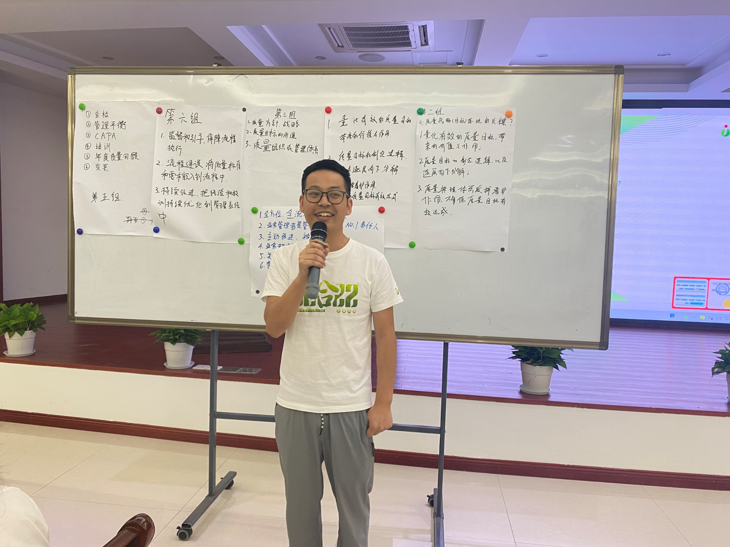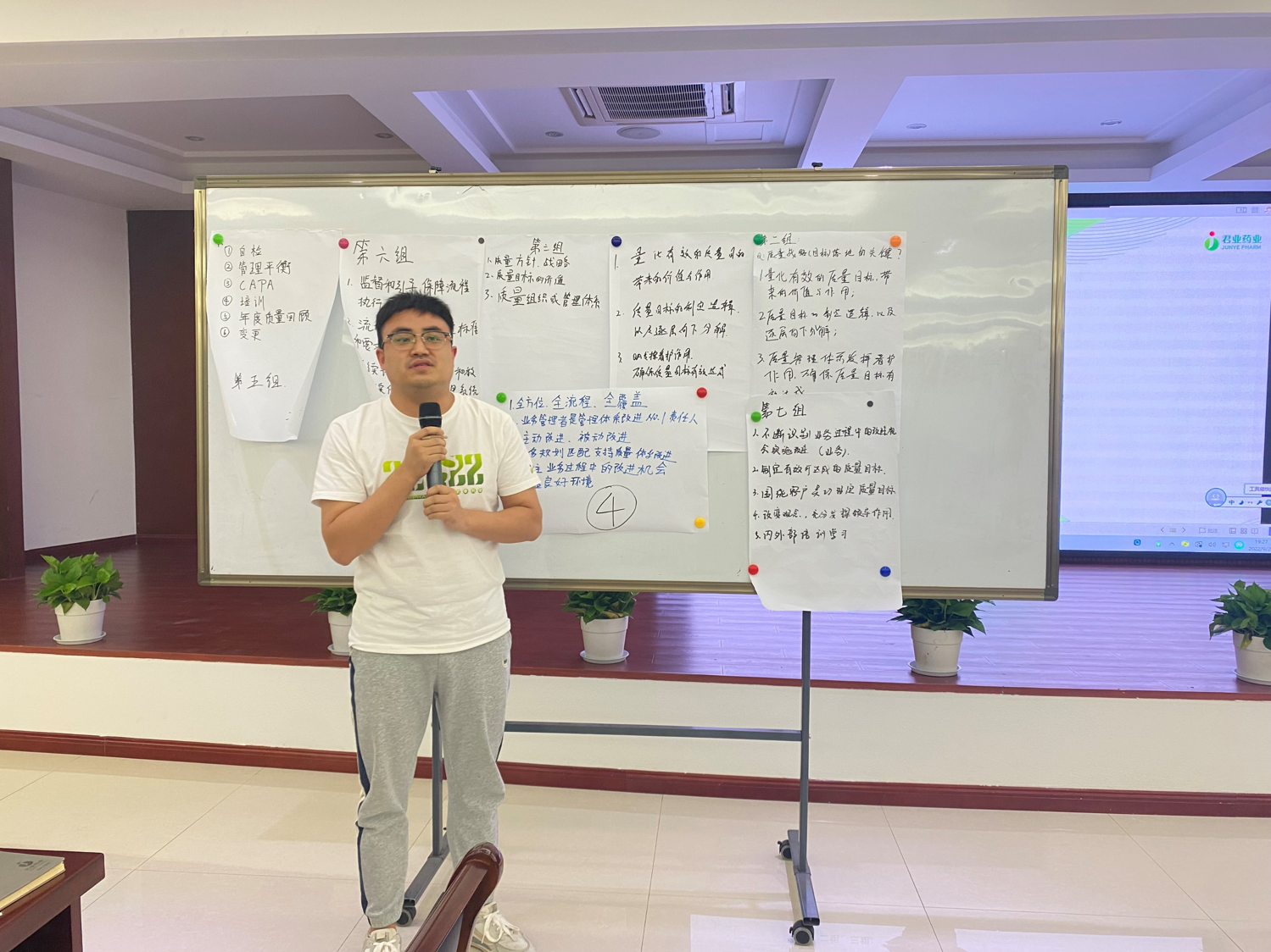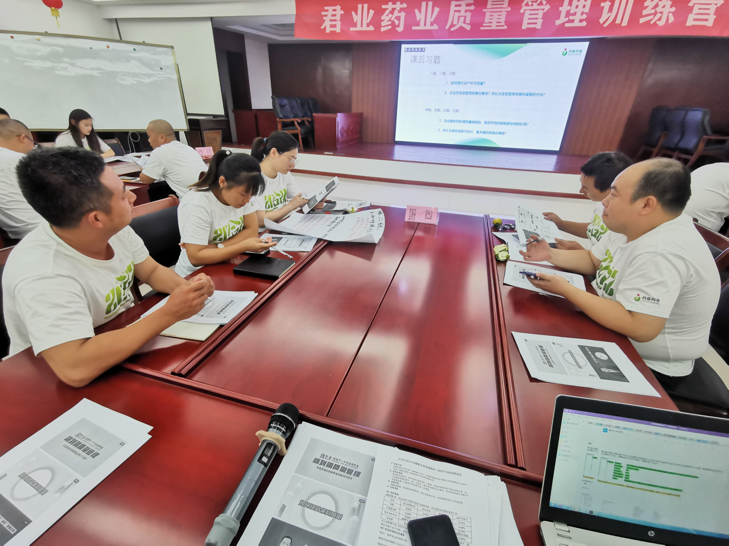 此次培訓(xùn)是君業(yè)藥業(yè)質(zhì)量管理訓(xùn)練營的最后一課,本次學(xué)習(xí)以課堂觀看視頻+小組研討的方式開展。